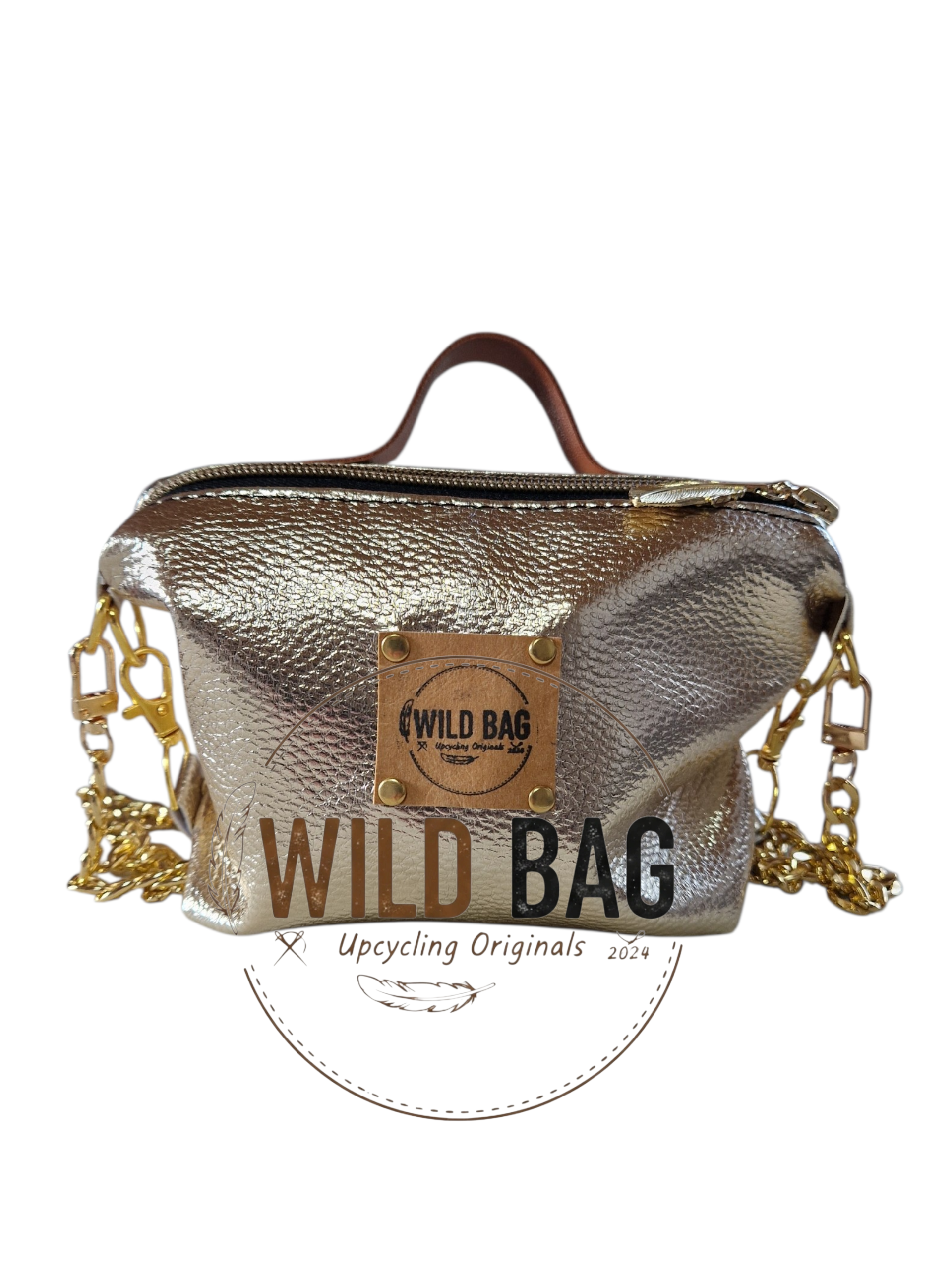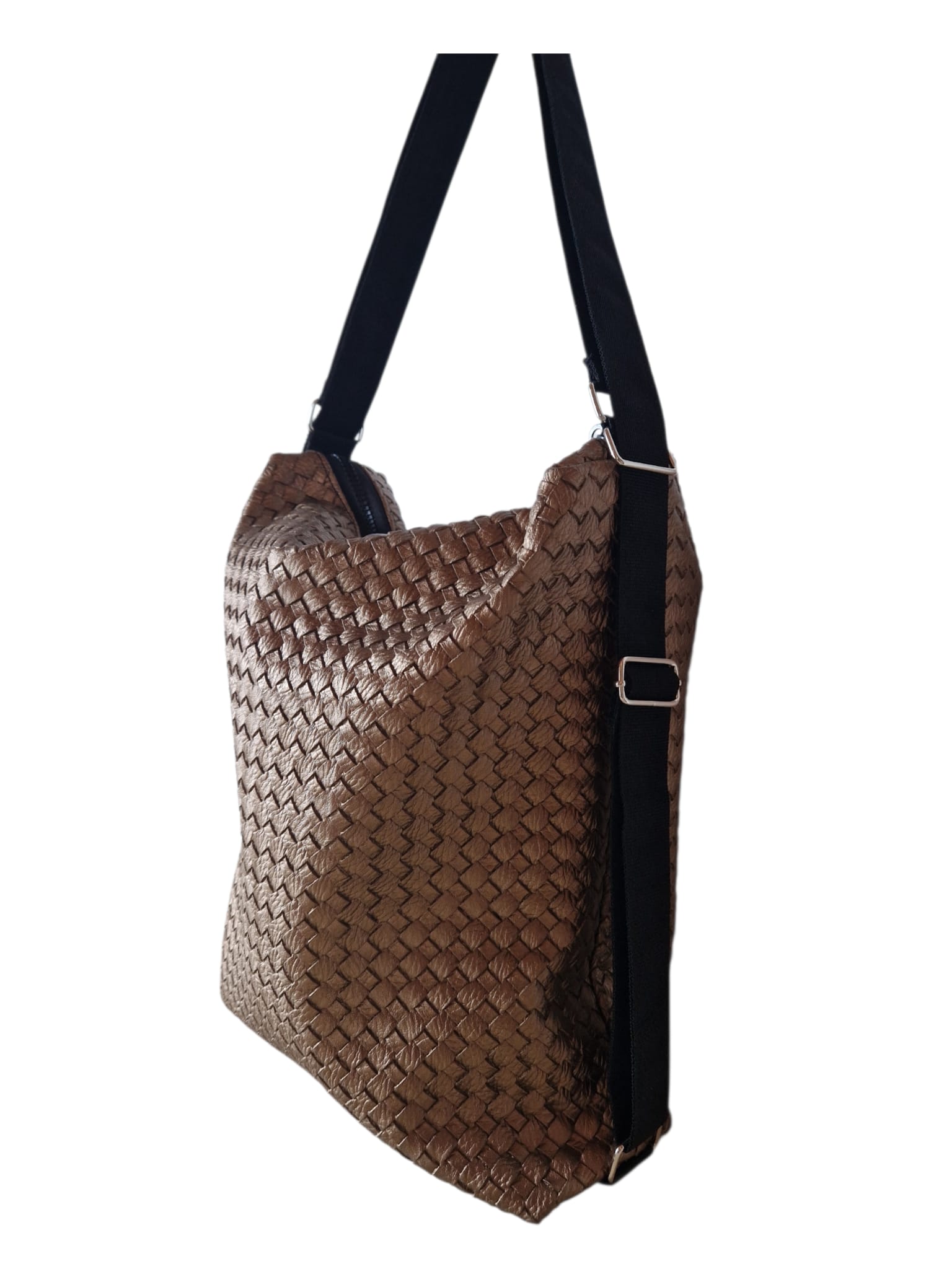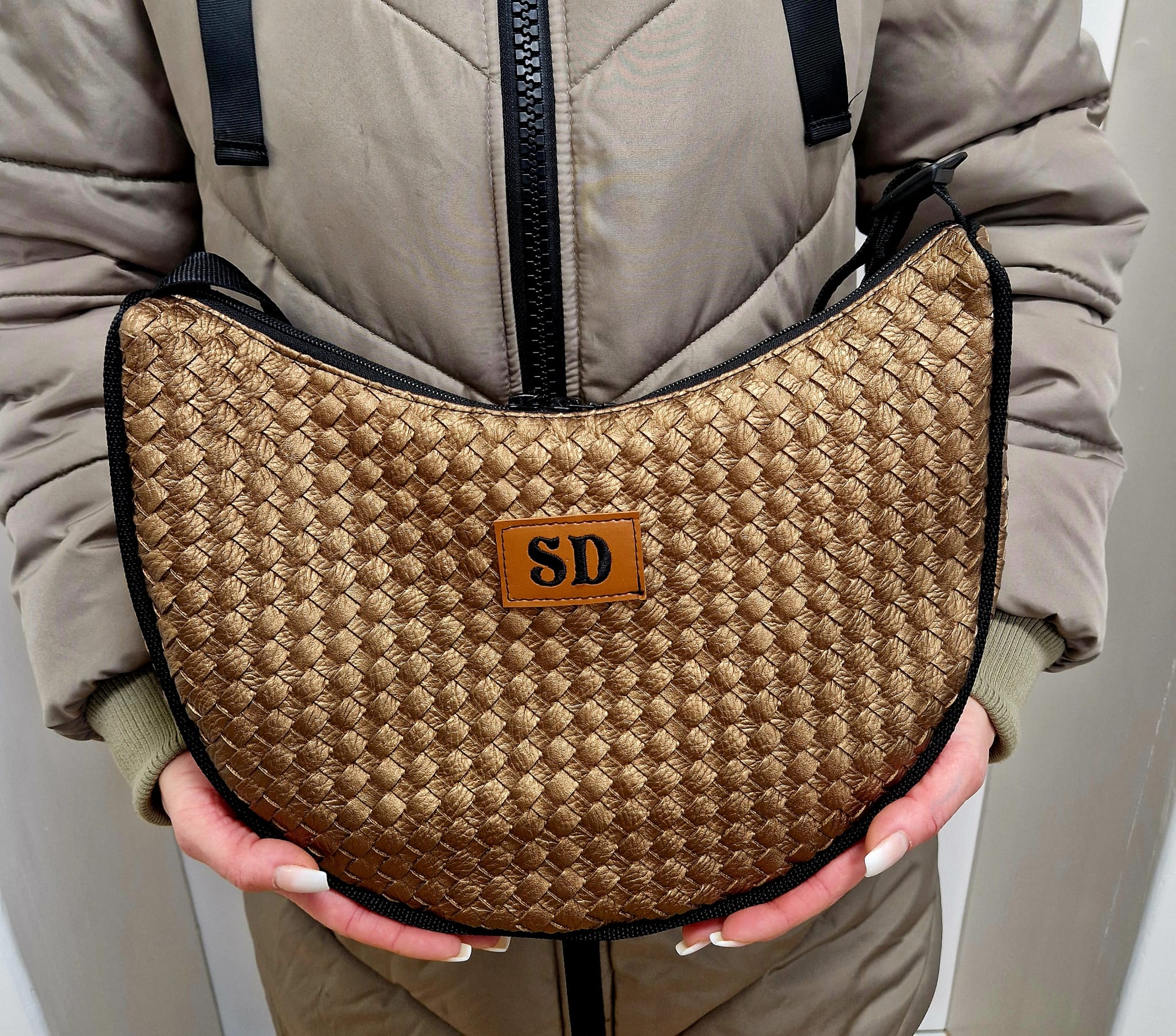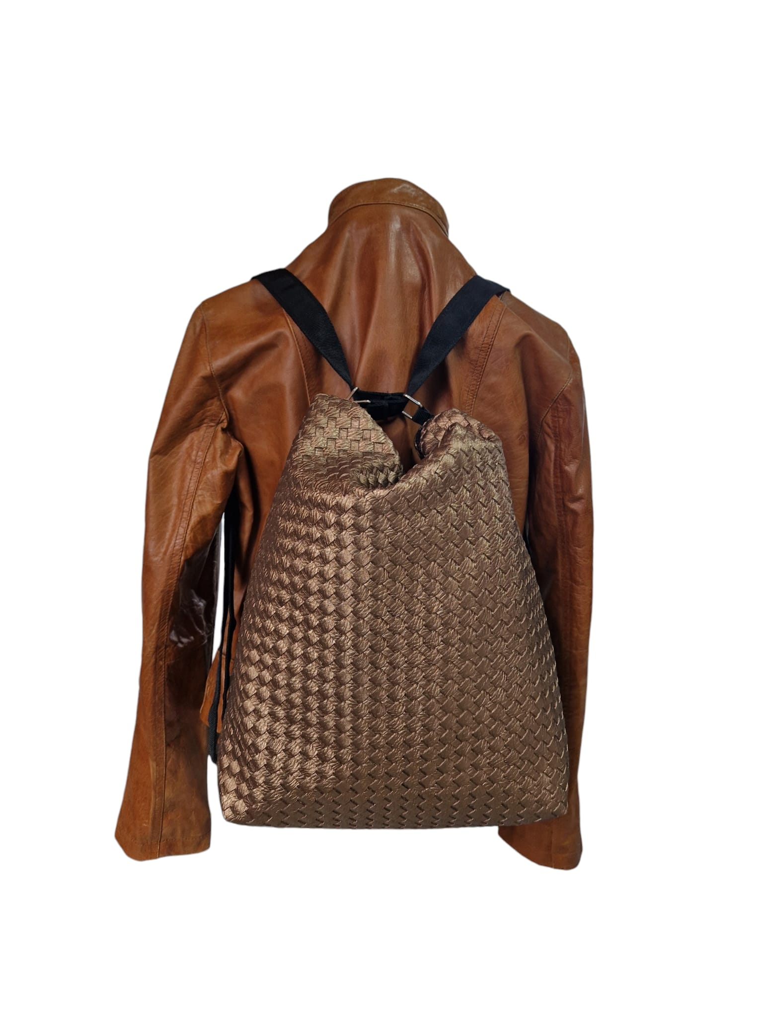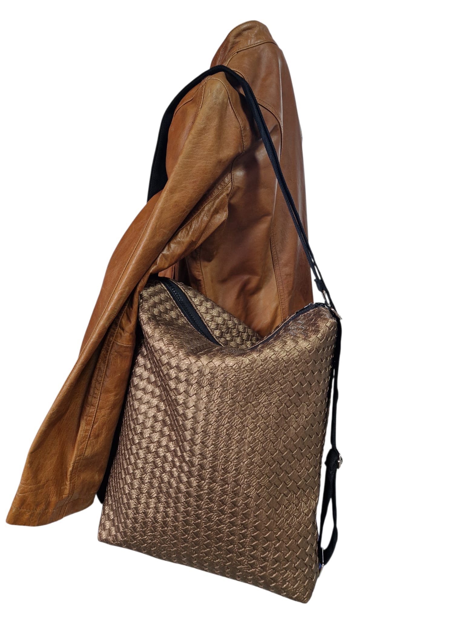 Material & Stil: Hochwertiges Upcycling-Material in edler Bronze-Metallic-Optik mit einer aufwendig geprägten Flechtstruktur.