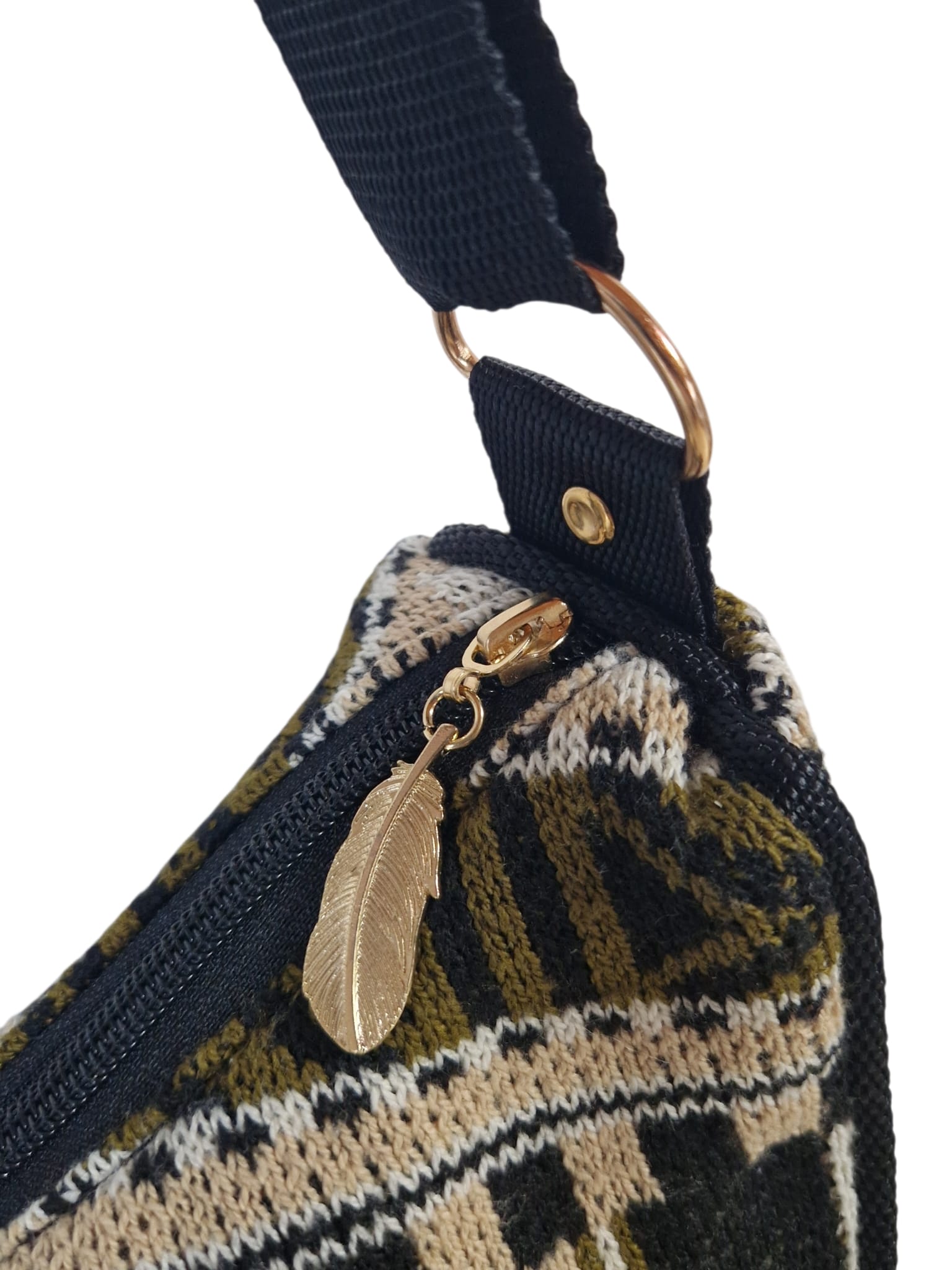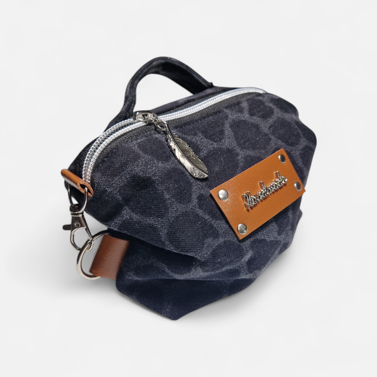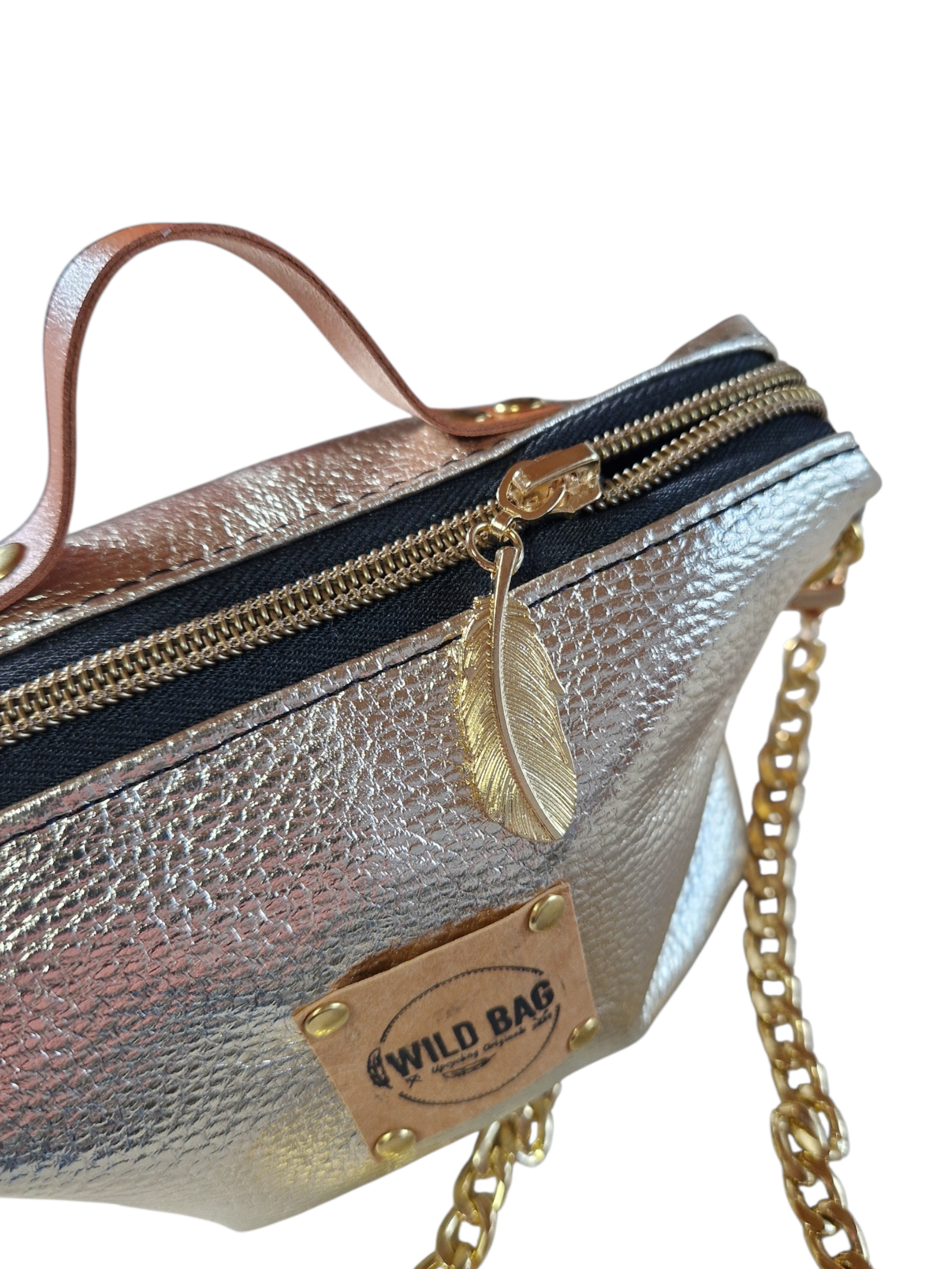 Edle Akzente: Hochwertige, goldfarbene Details wie der Feder-Anhänger am Reißverschluss und eine kleine Herz-Niete am Gurtansatz verleihen der Tasche einen luxuriösen Touch.