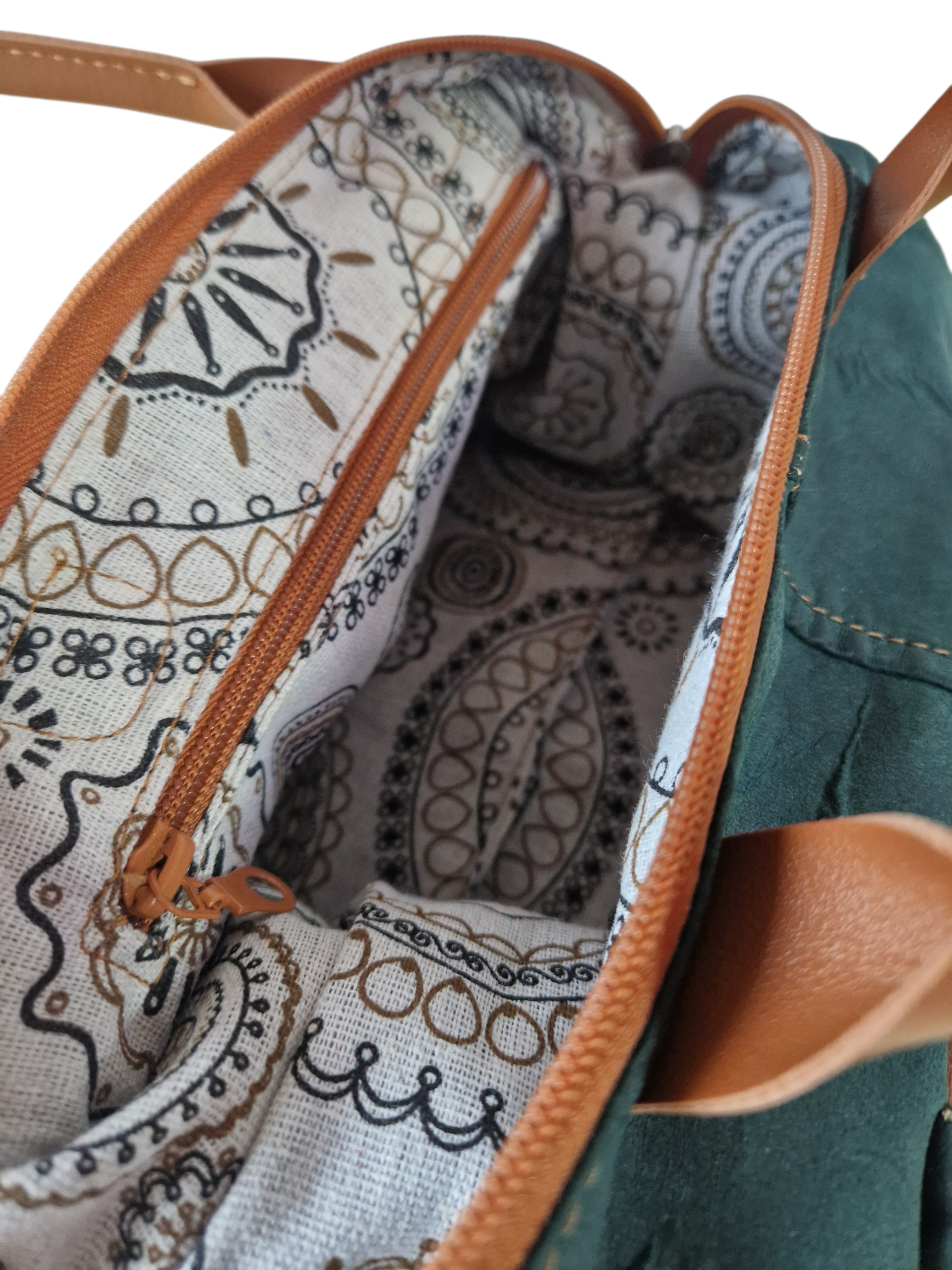 - Überraschendes Innenleben: Das Futter ist mit einem kunstvollen Mandala-Print verziert – ein verstecktes Highlight, das bei jedem Öffnen Freude bereitet.