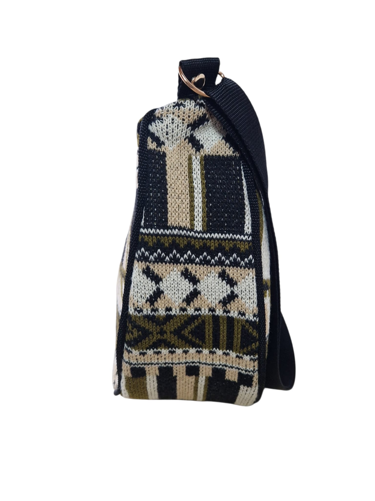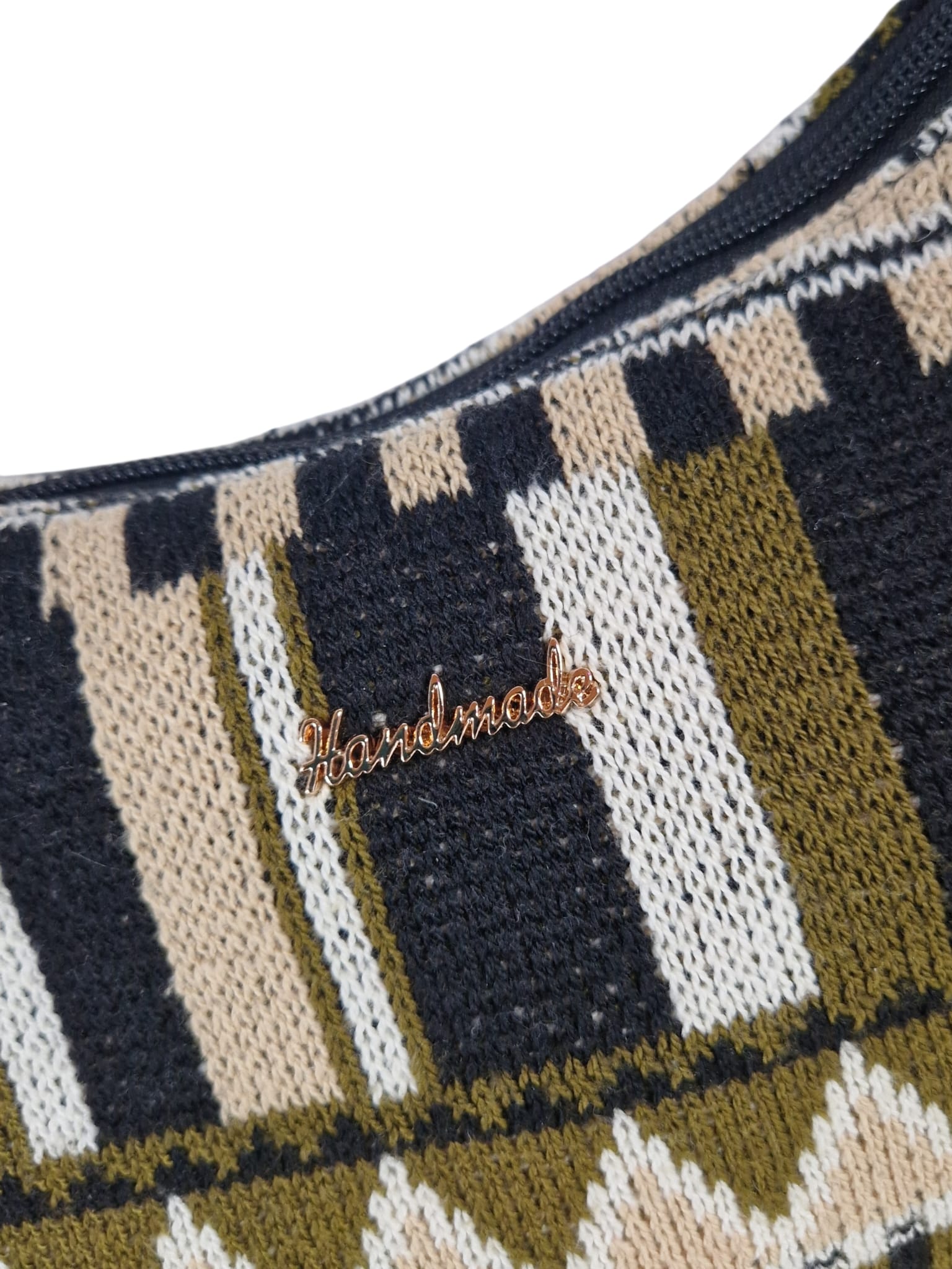 Texturerlebnis: Das markante Strickmuster in Schwarz, Beige und Olivgrün sorgt für eine lebendige Optik und eine angenehm weiche Griffigkeit.