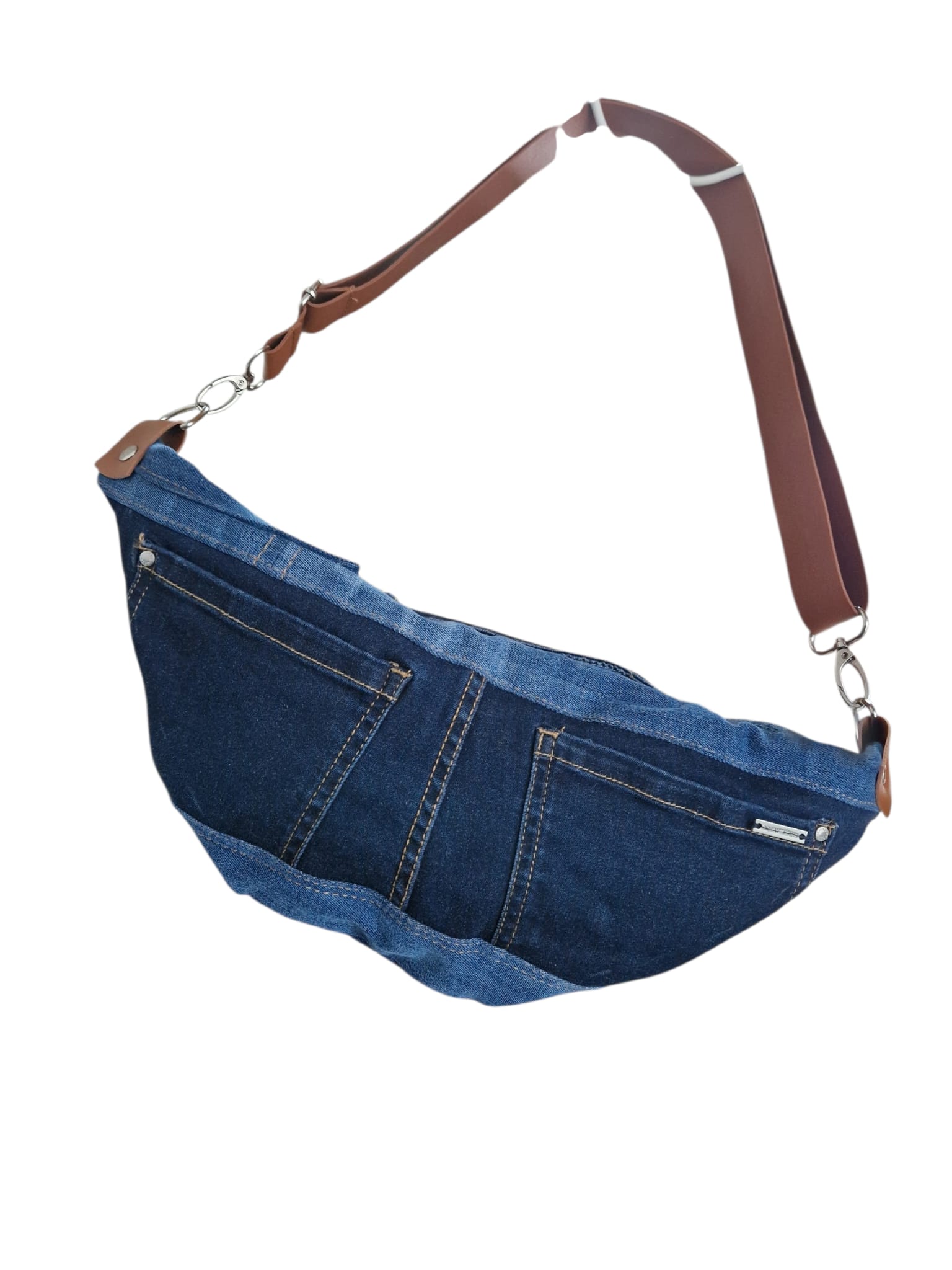 - Gefertigt aus hochwertigem Upcycling-Denim in Blautönen.